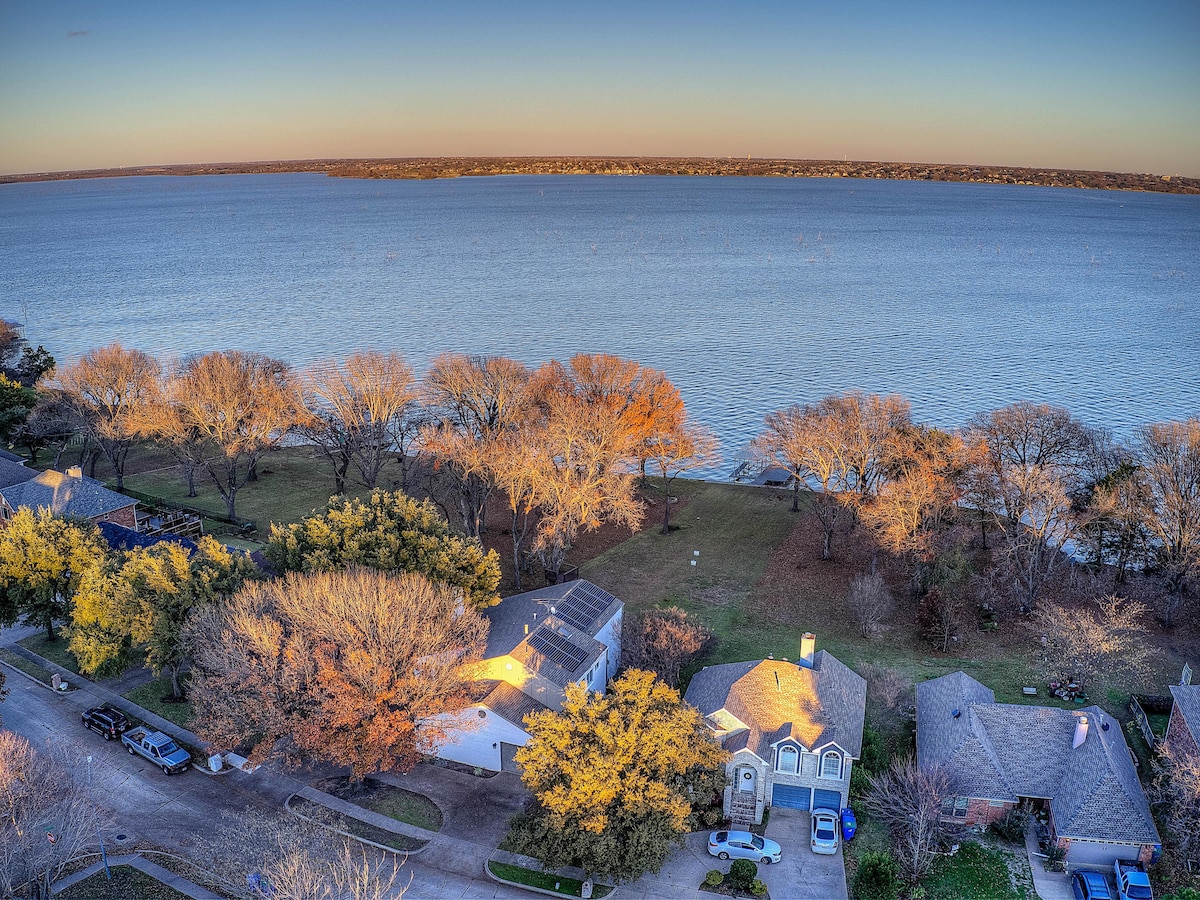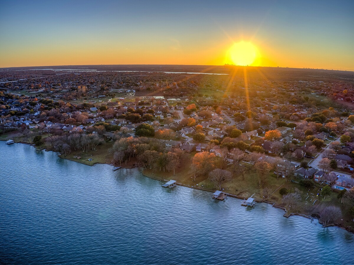 RowlettEscape to "Serenity on Hubbard," your lakeside slice of heaven in Rowlett, TX. Indulge in the luxury of a king-bedded master suite with an en-suite spa bath, shower, two walk in closets and private balcony for enchanting sunrise views. Plus, two additional Queen bedrooms and full bathroom upstairs.