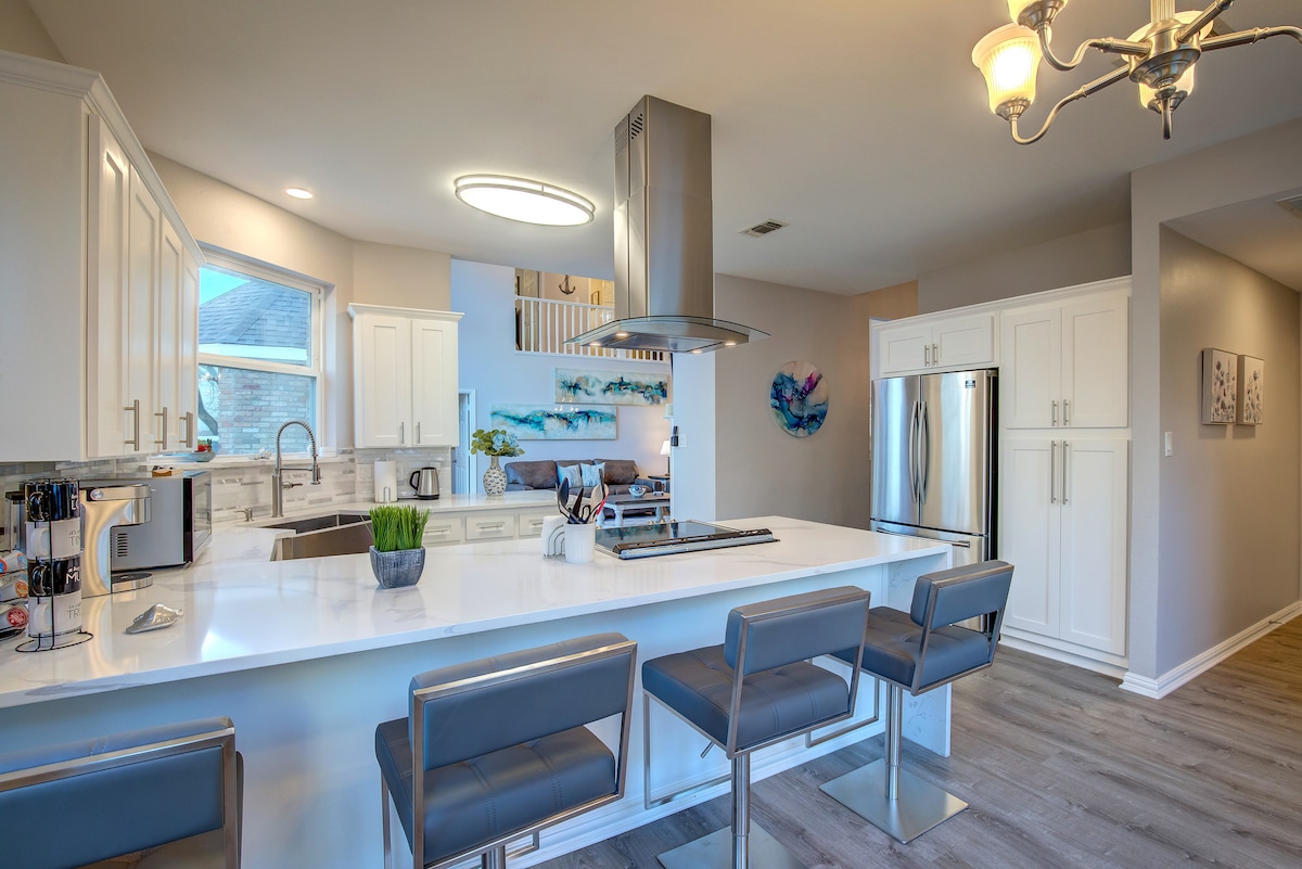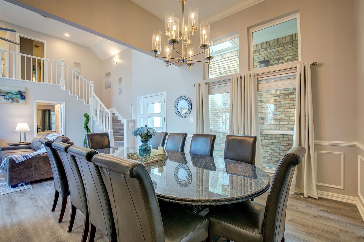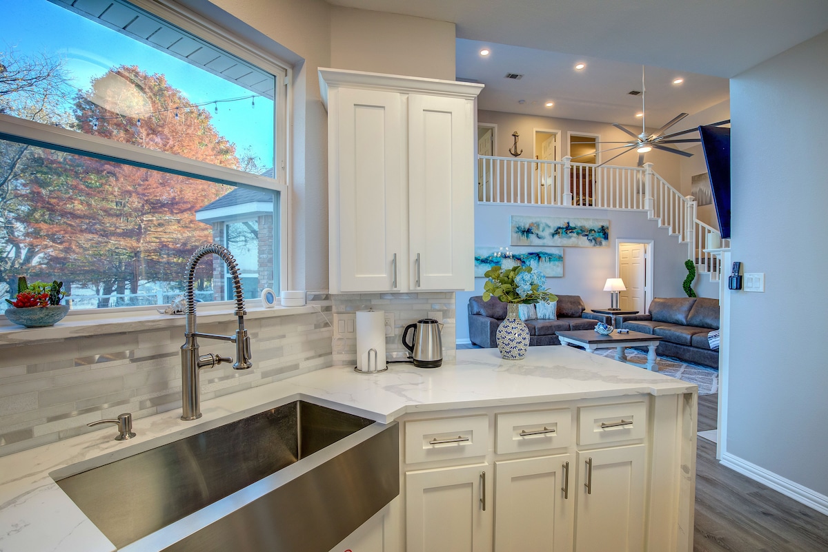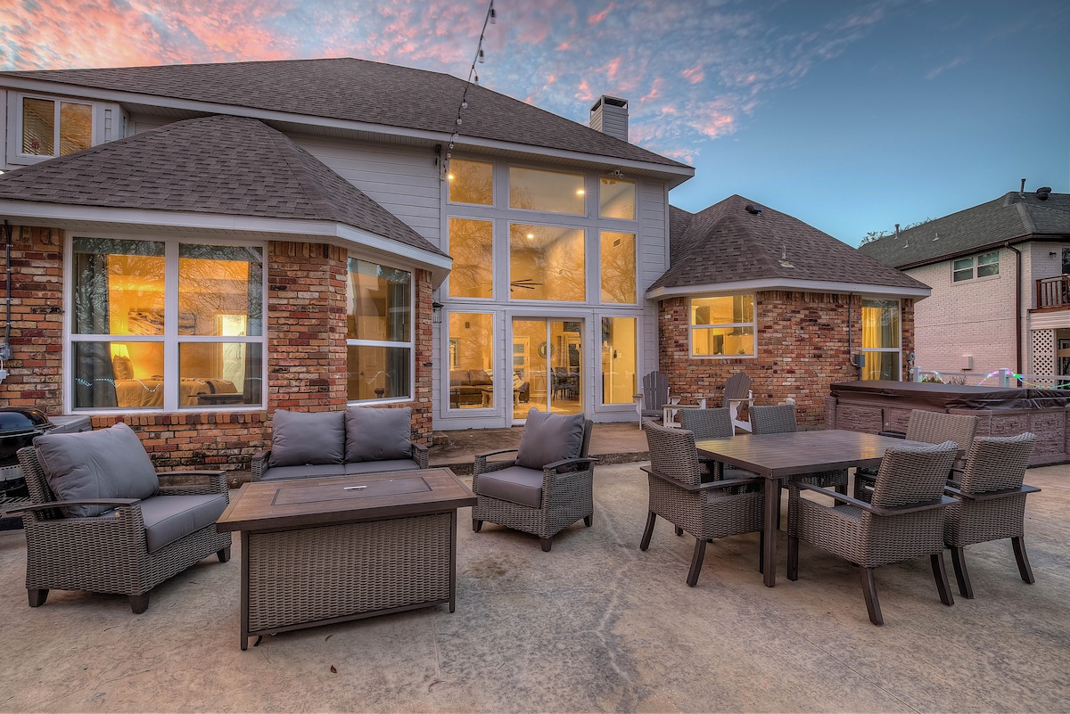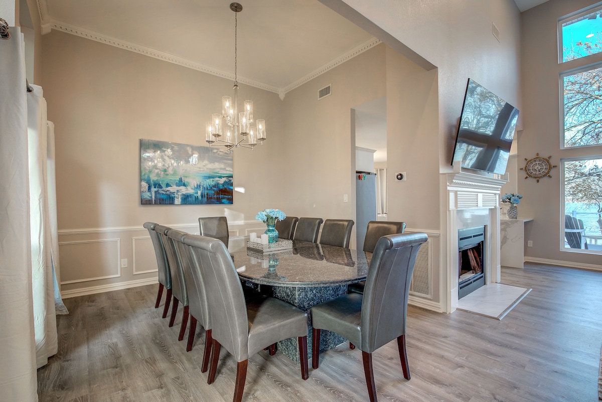 RowlettModern and Stylish Lakehouse ready to invite you for a perfect weekend away or relocation with family and friends! Primary bedroom features a king bed and ensuite bathroom with tub. Amazing views of the Lake from the bedrooms and living area with expansive glass windows. 7 Seater Hot Tub on the Patio. Family Room has 65 inch 4K curved Samsung TV with Playstation. Every bedroom has it own Large screen TV and comfortable hotel-style bed. Fully stocked kitchen with all new SS appliances.